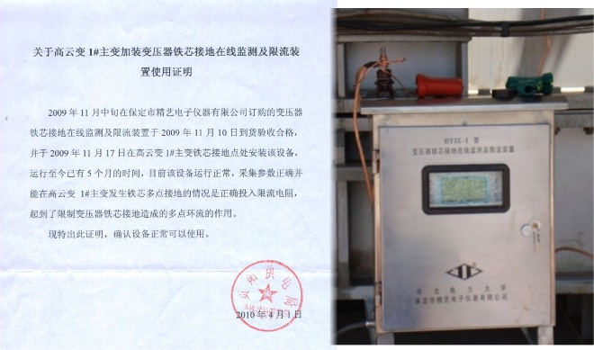 貴州高云110KV變電站安裝運(yùn)行變壓器鐵芯接地在線監(jiān)測及限流裝置