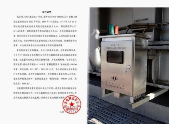河北廊坊康仙220KV變電站安裝運行變壓器鐵芯接地在線監(jiān)測及限流裝置